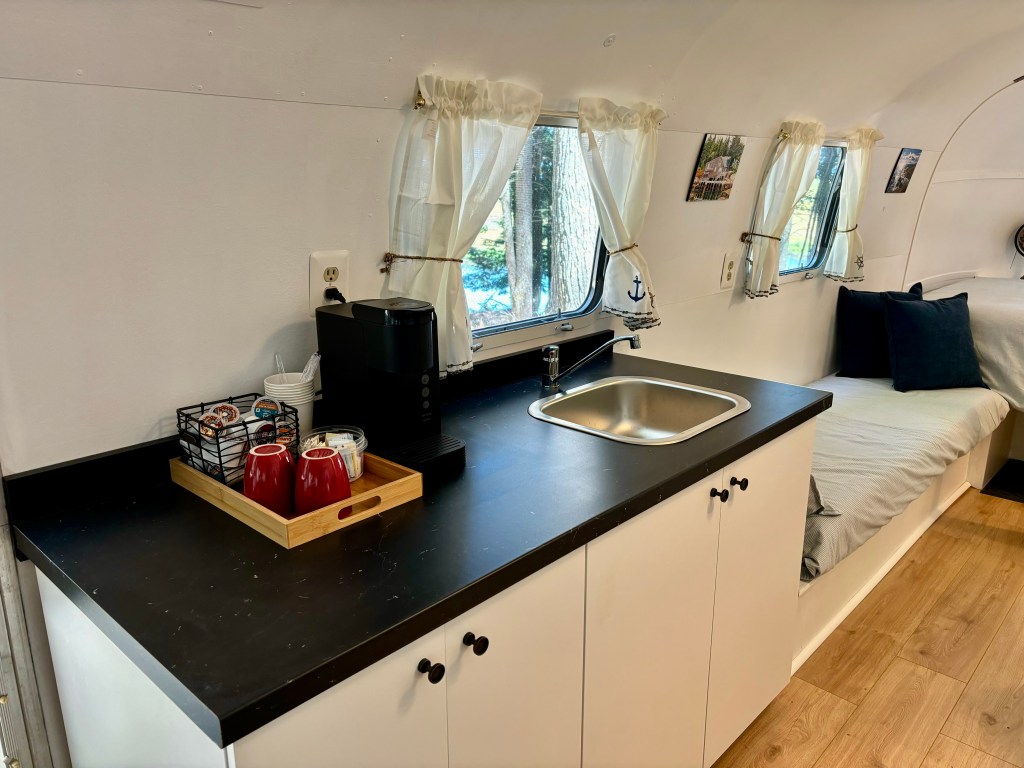 The Downeast Airstream/A-Frame sleeps up to six and features:
