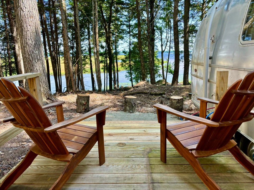 Escape the noise; relax and reconnect in a dreamy, renovated vintage Airstream with a fabulous view + a Tiny House A-Frame Cabin (on wheels). Our Downeast Airstream is a 1972 Airstream Ambassador (29 feet) that has been completely renovated to provide luxury and convenience while deep in the woods. And our Tiny House A-Frame Cabin is a perfect second bedroom and bathroom, just steps from the Downeast Airstream.